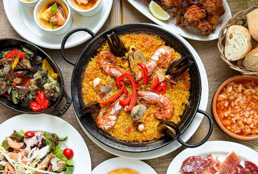 バルセロナ風チキンフリットやアヒージョ、選べるパエリャなど、お酒にぴったりの全8品が楽しめるコース。飲み放題はスペイン産ワインやビール、ソフトドリンクなど充実のラインナップです。店舗HPからのご予約様限定特典として、スパークリングワインの乾杯サービスも!