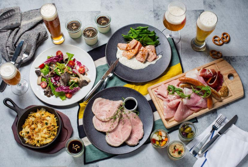 一皿で秋の味覚を食べ比べ。サーモンの塩麹漬け、旬のキノコ、カボチャをのせたタルティーヌ3種をセットでご用意。見た目も華やかで、前菜にも軽食にもぴったりです。ビールのお供にもぜひ。