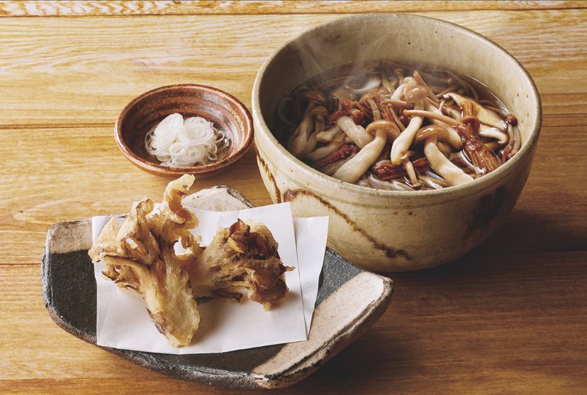 シメジ、山えのき、シイタケなどの旨みが染み出した出汁は、滋味深く心温まる味わい。マイタケは香ばしい天ぷらで、香りと食感のアクセントに。野趣溢れるそばと秋の恵みが織りなす、心も身体も満たされる一杯です。