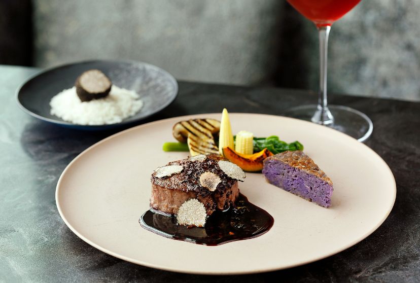 国産牛フィレを香ばしくポワレし、芳醇なトリュフソースで仕上げた贅沢な一皿。仕上げに秋トリュフをその場でたっぷりと削り、より一層風味を引き立てます。ワインバーならではのペアリングとともにお楽しみください。