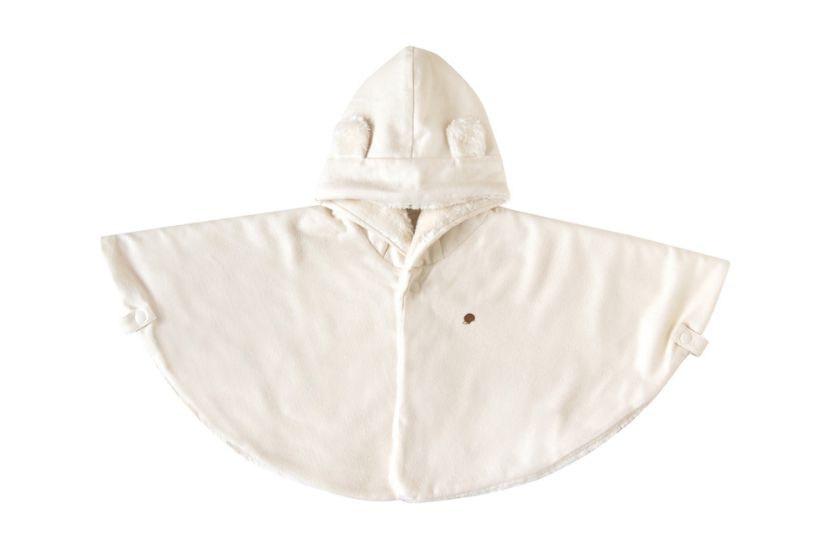 赤ちゃんの肌にやさしいオーガニックコットンを使用した、ふんわり軽やかなマントは、片側に耳がついていて着用シルエットがとてもかわいいのが特徴。リバーシブル仕様で、気分やコーディネートに合わせて楽しめるのが魅力です。外出時の体温調整やベビーカーでの防寒にもぴったり。
