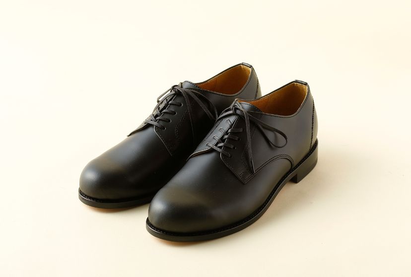 クラシカルで洗練された印象の、シンプルなプレーントゥレザーシューズ。靴職人の技が息づく浅草で丁寧に作られ、日本人の足に合う設計で履き心地も快適です。使うほどに足になじみ、革の風合いも深まります。カジュアルにもジャケットスタイルにも合い、オンオフ問わず長く使える一足です。