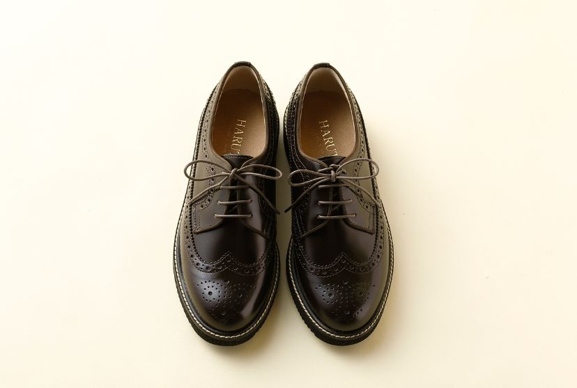 クラシカルな佇まいが魅力のウィングチップシューズ。ツヤ感のあるダークブラウンのガラスレザーが秋の装いをアップデートしてくれます。歩きやすさにもこだわった設計で、通勤から週末のお出かけまで快適にサポート。白ステッチのアウトソールデザインもポイントです。