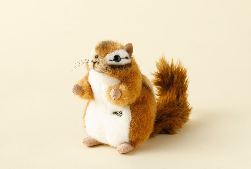 まるで本物のような愛らしさが魅力の、ドイツ・ケーセン社のぬいぐるみ。リアルな毛並みや表情まで細部にこだわり、思わず撫でたくなるようなやさしい手触りが特徴です。インテリアとして飾るのはもちろん、ギフトにもおすすめ。秋の森に佇むようなシマリスが、空間に温もりを添えてくれます。