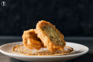 ホクホクのジャガイモに黒トリュフを贅沢に使用した、自慢のスペシャリテコロッケ。香り高く濃厚な味わいを、自宅でもレストランの味として存分に楽しめます。