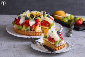 カスタードクリームのタルトにホイップクリームを重ね、いちごやグレープフルーツ、キウイなど彩り豊かなフルーツを贅沢にトッピング。見た目も華やかな一品です。