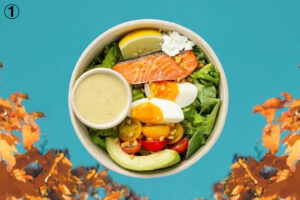 麹を使った無添加ドレッシングのサラダボウル。肉を使ったサラダや魚を使ったサラダなど8種類の展開があり、その日の気分や体調に合わせて選ぶことができます。