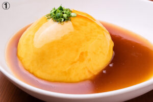 とろりと半熟に仕上げたふわふわの玉子に、オイスターソースをベースとした広東風のあんをたっぷりとかけた贅沢な天津飯。やさしい味わいが広がる定番メニューです。