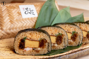 車海老や穴子、江戸前玉子焼きなどを贅沢に巻き込んだ、1本で約4人前の大きな太巻き。豪華な具材がぎっしり詰まった、満足感たっぷりの一品です。