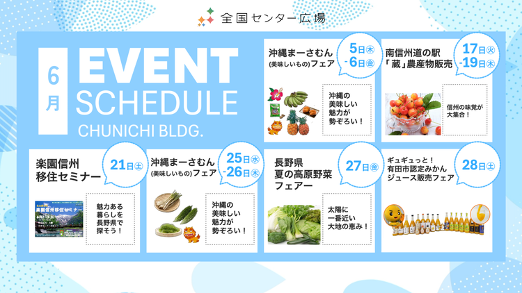 【イベント終了】全国センター広場 6月イベントスケジュール