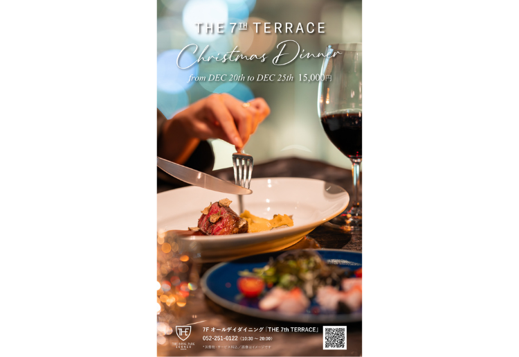 7F オールデイダイニング「THE 7th TERRACE」では、12月20日(土)~12月25日(木)の6日間限定で、聖夜にふさわしいスペシャルディナーコースをご提供いたします。シェフ渾身のフルコースに加え、スパークリングワインやカクテルなど多彩なドリンクセレクションを心ゆくまでお楽しみいただけます。