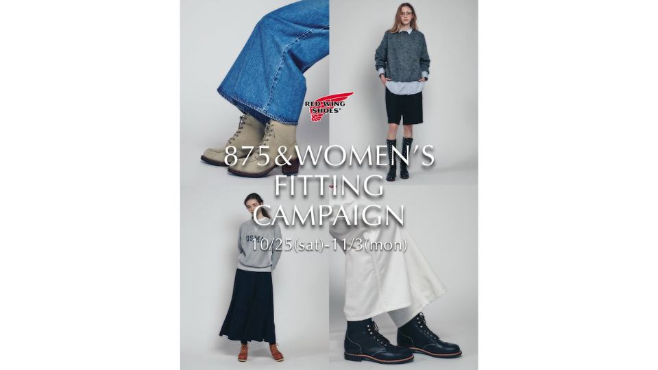 少し涼しくなり、ブーツが心地よい季節となりました。RED WING SHOE STORE NAGOYA CHUNICHI BLDGでは、10月25日(土)~11月3日(月・祝)の期間、「875&WOMEN’S FITTING CAMPAIGN」を開催します。初めての一足を探している方も、すでに愛用中の方も、この秋は新しい一足との出会いを楽しみにいらしてください。