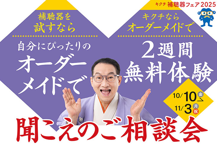 10月10日(金)〜11月3日(月・祝)の期間中、「聞こえの相談会」を開催。最近ちょっと聞こえづらいかもしれない、補聴器について知りたい、そんな疑問に丁寧に応えます。店頭では補聴器の試聴も体験もできますので、家族や自身の聞こえについて気になる方は、ぜひお気軽にお立ち寄りください。