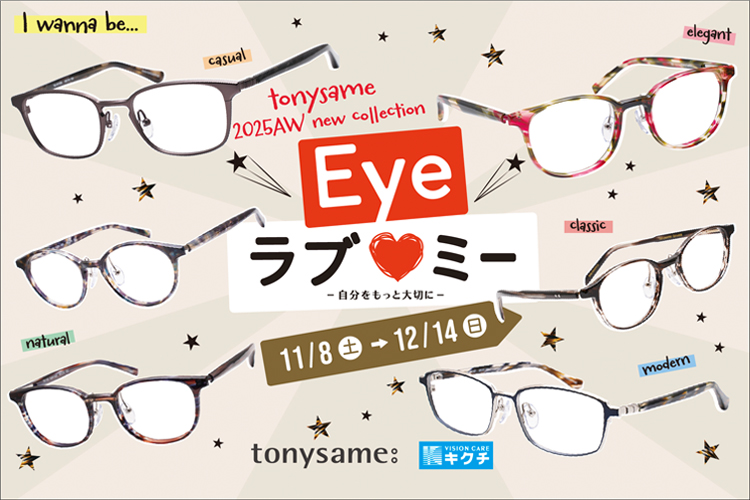 キクチメガネでは11月8日(土)~12月14日(日)の期間、『トニーセイム Eyeラブ♡ミー』を開催いたします。
